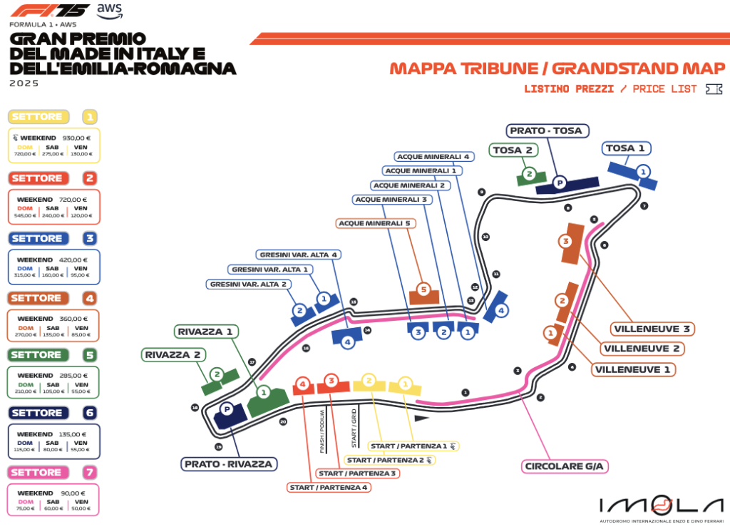 Keep reading for a full analysis of all the grandstands and general admission areas at Autodromo Imola for the 2025 Emilia Romagna Grand Prix.